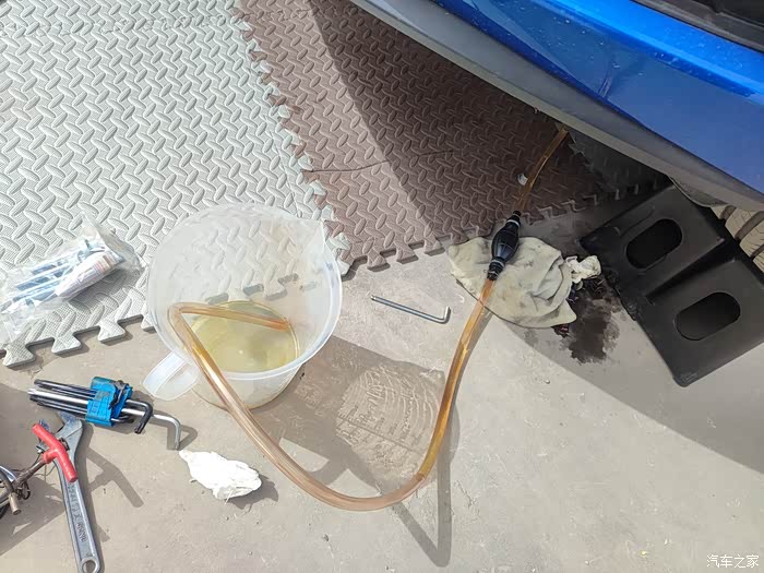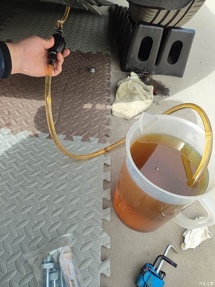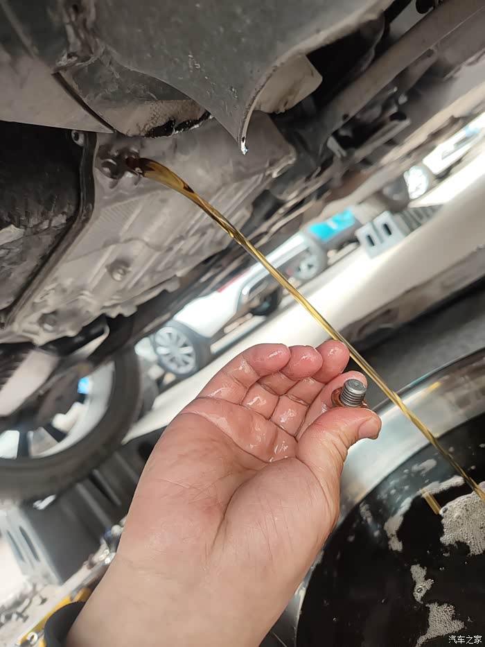 看旧机油颜色有点发黑发乌了,这次换油就当是提前给变速箱首保了。