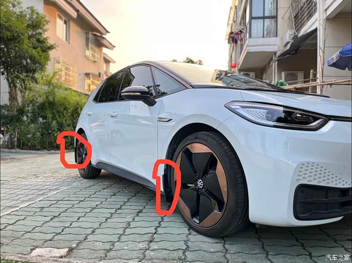 一、挡泥板安装,ID3因为是后驱,所以很容易溅起泥水,所以我提车后就装上了挡泥板,会比没有装好一些,新买ID的朋友如果想要安装挡泥板的话,可以看看我的安装效果