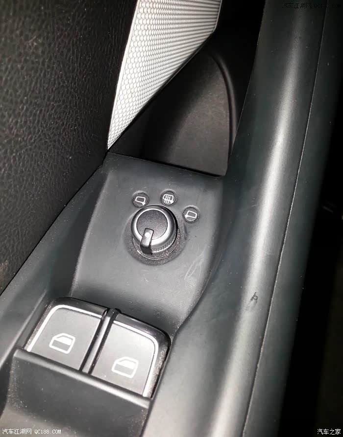 注意后视镜调节开关,我的是换了高配的,调到后方就是电动折叠,建议换一个,网上有的不贵,如果你不换也没关系,反正锁车能自动折叠就可以,只是过那种狭窄的巷道之类就手动调不了。
