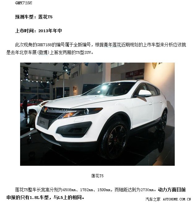车美人更美!你买不买,反正我是买定了!!!!!!!!!!以下是莲花T5 SUV官方宣传图案,请自备面巾鼻涕准备迎接。2013年上市,预计售价在10万元左右。这款车由青年莲花汽车与马来西亚宝腾合作研发。