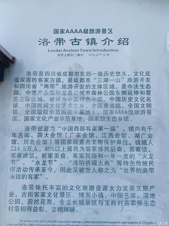 今天,悠闲地玩耍成都市龙泉驿区洛带古镇,早9点开车从出成都发,大约10点到达成都市龙泉驿区洛带古镇,开始游览,门票:0元。。停车费:10元。游览结束。回到成都。