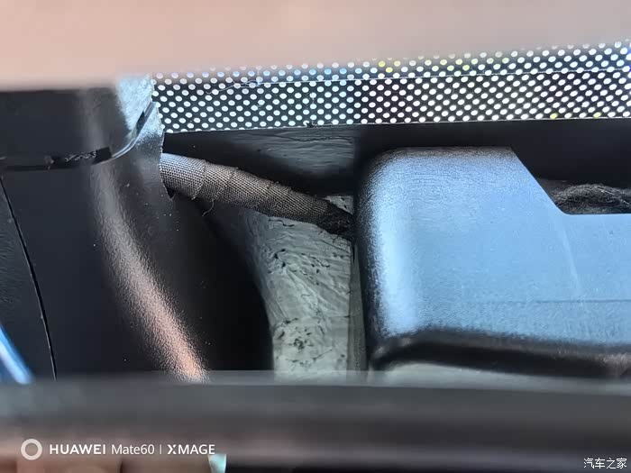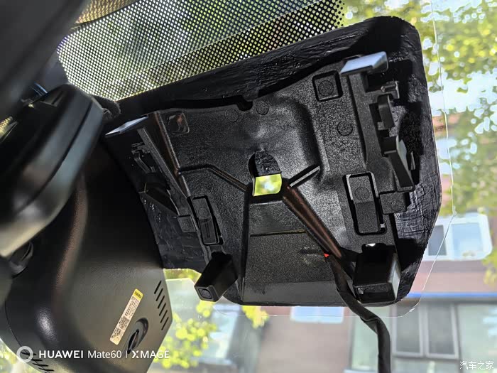 粘好支架之后看到了高尔夫原车的这个三角窗,发现比咱这个小很多,从外面根本看不见相机镜头……真后悔事先没参考一下原装的,如果把这个三角窗裁小一点,那么支架的安装位置就可以再向上10毫米左右,那样就会更美观,也会减低阳光对镜头的干扰。