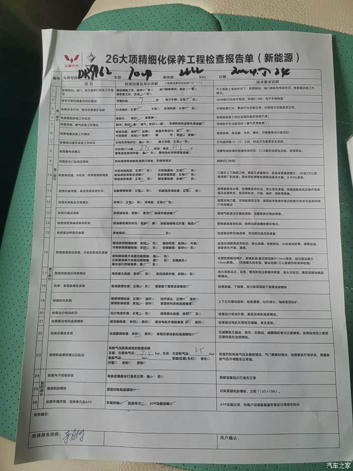 26大项精细化保养,这26大项我也没搞清楚是做了些啥,估计每一个动作就算一项吧。