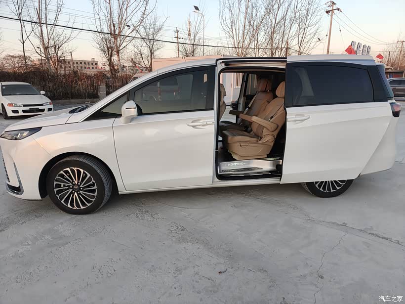 外观内饰:实车非常好看,车身有质感,前脸很大气,车身线条也流畅。内饰是浅色搭配,显得宽敞明亮,用料不错,能摸到的地方基本都是软的。配置够用,但是电滑门只有一面太抠了。中控屏反应速度还行,就是车机功能比较基础。