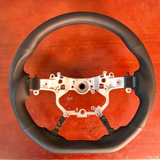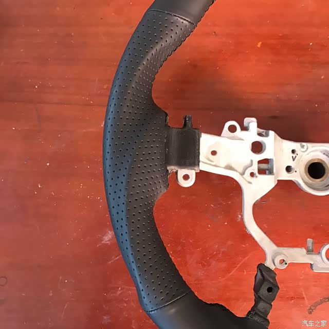 说一下这个方向盘吧,手感比原厂硬,下面是平底的,造型很运动,握感爆好,皮质一个手指触摸感觉滑滑的,但是你整个手握上去会发现摩擦力好到爆,单手搓方向盘转向十分轻松,3点9点方向加粗,握感十足,由于整圈都是不规则造型,而且粗细有变化,打方向的时候存在感很强,虽然直径和原厂差不多,但是给人一种小一圈的感觉。