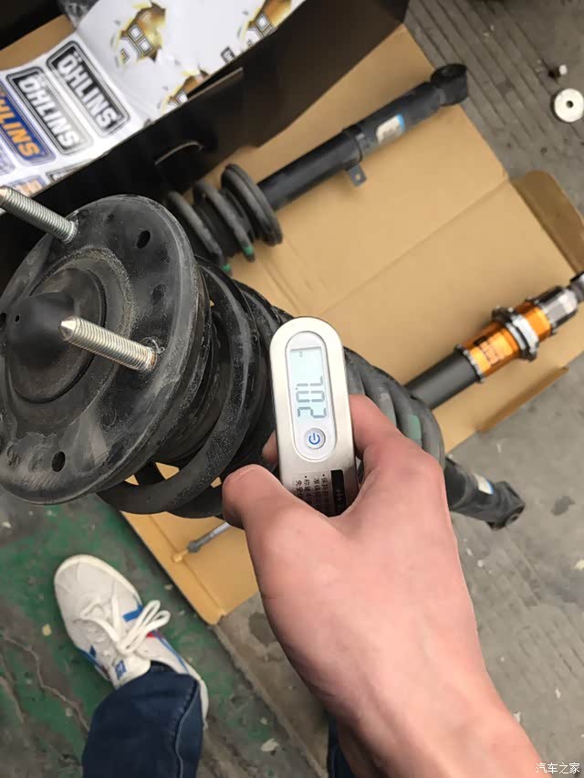 接下来对比一下和原厂减震的重量,原厂前减震7.02kg,ohlins4.17kg,原厂后减震7.66kg,ohlins5.48kg,减重效果明显