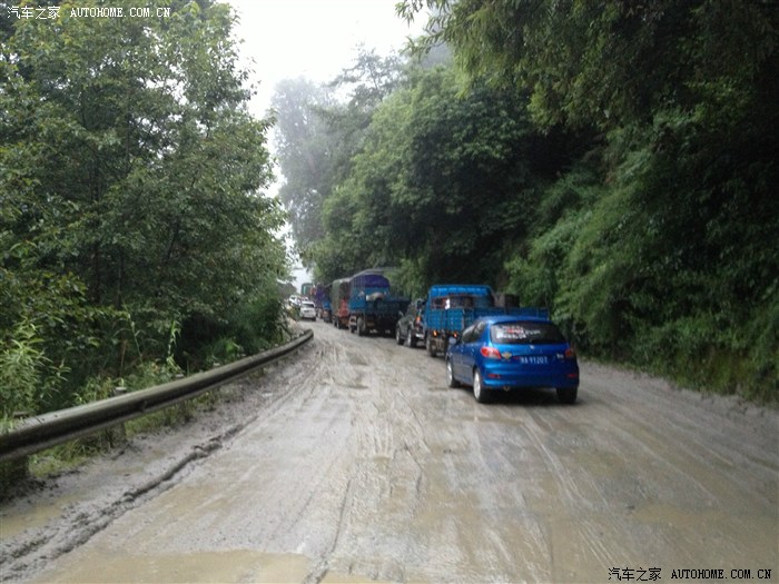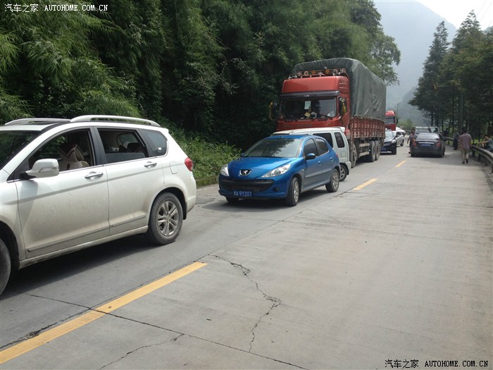 不是堵车,是因为会车,路窄,要一次一辆车通过