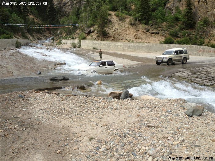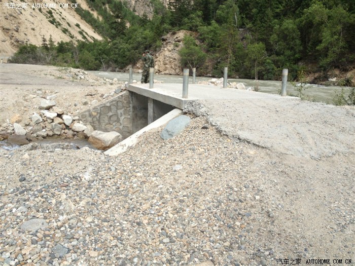 这就是传说中的然乌到波密的路况,小型车不想冒险淌水,下图这个桥,也可以过,本人一把方向盘过去,武警侧目!