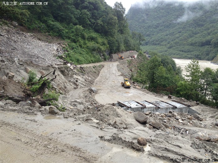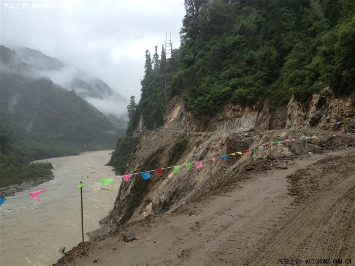 前方距离通麦大桥也就几百米,这个地方塌方,其实很常见了,你看土质多松软,还是那句话:全是大车,没有小车哦!