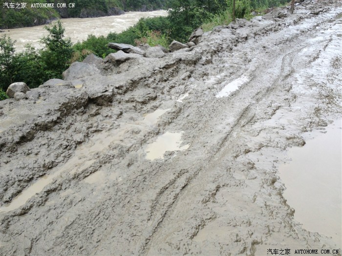 这种泥水里夹着碎石,小心你的轮胎