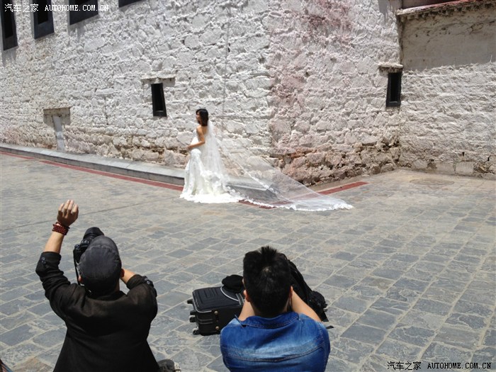 大昭寺的墙壁边站着待嫁的新娘