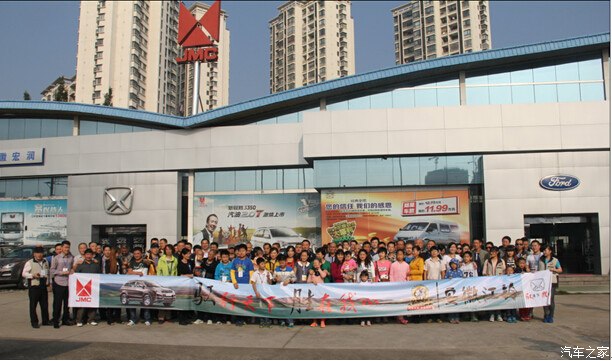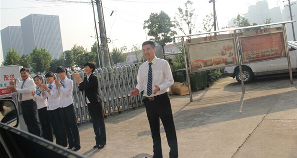 8点钟,上车出发喽!没想到4S店工作人员列队欢送,这待遇有毫高啊,哈哈!