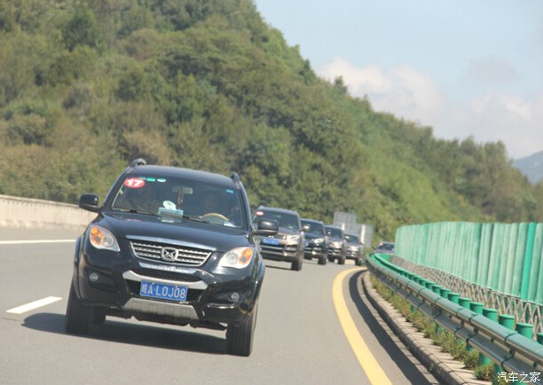出门直接上高速,每个车上都有一个4S店工作人员陪同,带着对讲机,保证客户行车安全,这点做的还是不错的。领队车通过对讲机,让大家通过收费站后靠边停车整队。