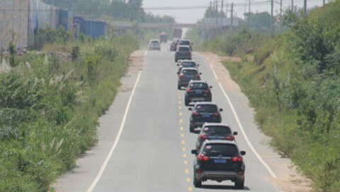 下了高速,继续行进。一溜排的大胜,引人注目,路人,车辆都在追着看,好长的车队啊!