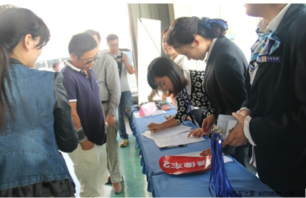 签到,领贵宾证,每个车主还发一个JFX马甲,统一服装。负责签到的都是美女啊!