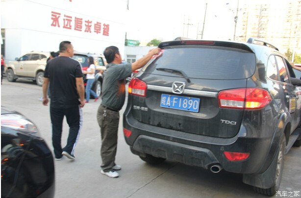 销售员已经在贴车贴了,江铃驭胜,整齐车贴,看起来像是那么回事了,期待这次自驾。