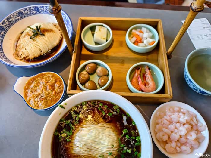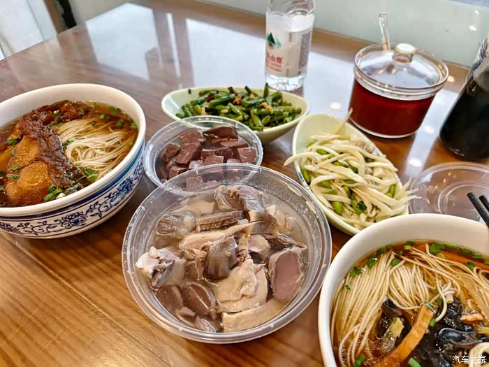 白天赶路,饥肠辘辘。江南口味走起,鳝丝,锅盖面,卤鹅,蜜汁荸荠。出门无惧减肥,舒坦。