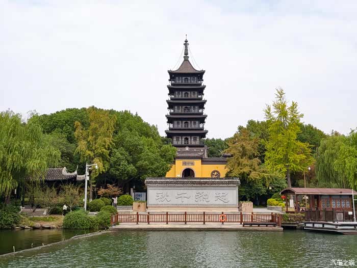 再引夫人墨宝:“今天上午的主题是“lake walk”——环嘉兴南湖一周。全程大约5公里,用了将近三个小时。南湖的园林风格与大明湖颇为相似,若把大明湖比作大家闺秀,南湖就更像一位小家碧玉,清秀可人。那艘标志着革命火种的红船,静静停泊在湖心岛边,无声诉说着历史。登上壕股塔远眺,南湖与嘉兴城尽收眼底,风光十分秀丽。”