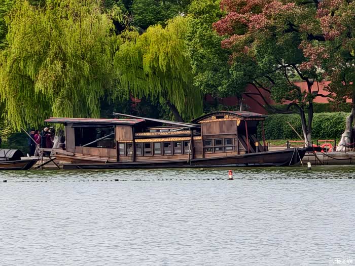 远观红船,在湖中心的一个岛边停靠