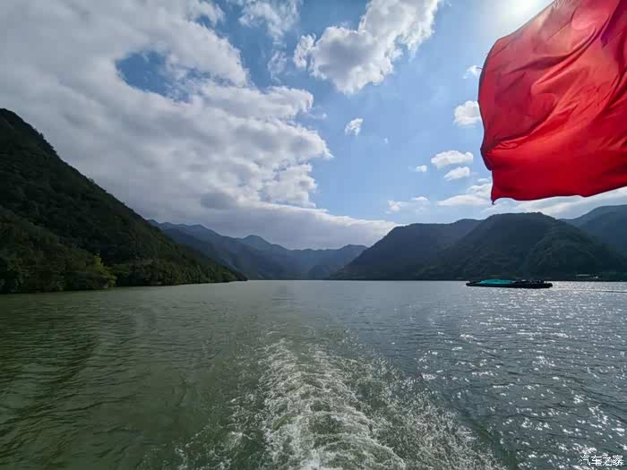 进入浙江后,景色愈发奇秀。我们几乎是在崇山峻岭的怀抱中穿行,隧道一座接着一座,光影在明暗间交替,如同穿越一道道自然之门。历时4小时,于下午1点顺利抵达富春江边的龙门湾码头。