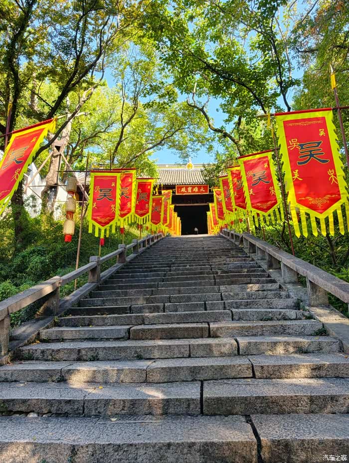 上午9点准时启程,335公里的路途,一路畅通无阻。飞驰的高速公路仿佛是我们的专属通道,轻松横跨苏、皖、浙三省。车窗外,蓝天白云相伴,山色愈发青翠润泽。与北方大山的雄浑苍劲截然不同,这里的山体被茂密的植被温柔覆盖,越往南行,空气仿佛都变得湿润清甜。