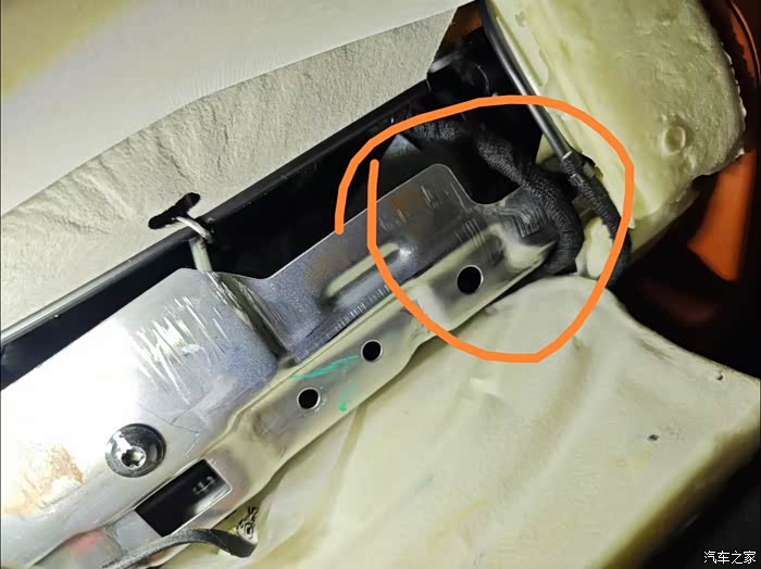 就是图中的铁片会摩擦到线束,所以加了黑色的胶垫做防护!就是前面说的通病隐患。