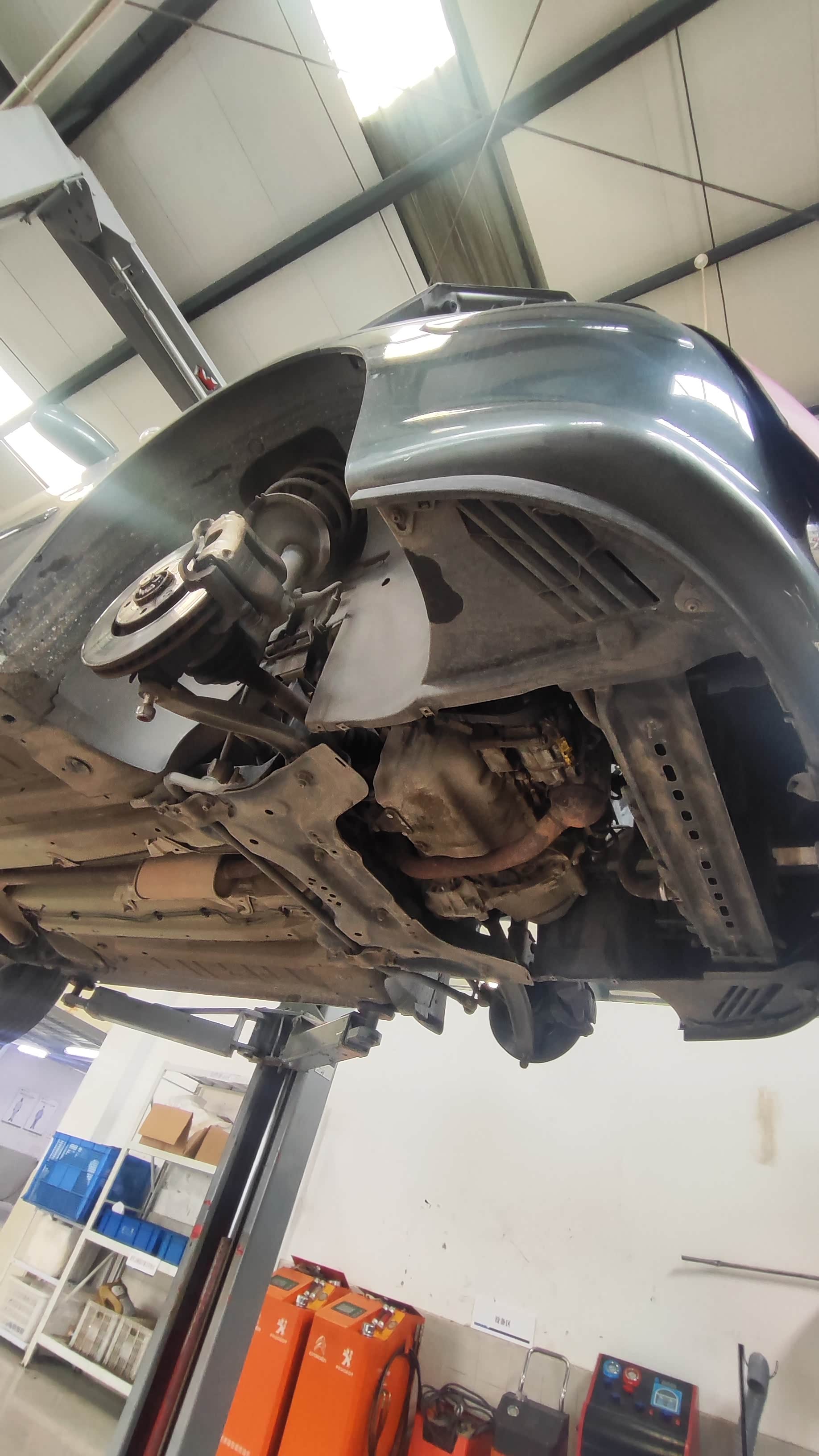 首先将车辆放在举升机上,放出变速箱油,有下护板同时拆除,拆除两前轮胎以及左前轮胎内衬拆除两根转动轴,注意右边转动轴中间有两颗螺栓固定过桥轴承。