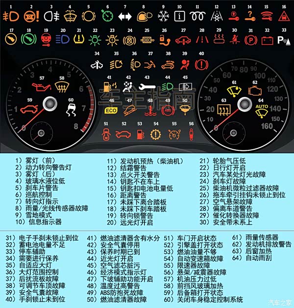 ③蓝色指示灯起告诫作用,比如远光灯是否在适合路段开启。