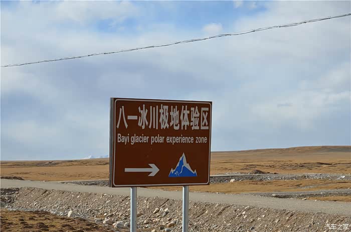 看到路标就离八一冰川不远了。下了柏油路还要走30多公里的砂石路,其中有几公里很烂的路。
