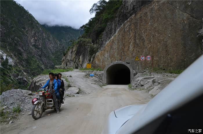 一路唯一的隧道,隧道里的路面也是坑坑洼洼的,照明只能靠车灯。