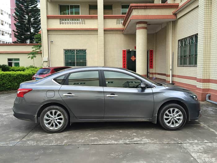 选车:因为是一家人用的车,所以选车也是要征求家里每个人的意见。弟弟对汽车关注的比较少,他说他没什么意见。老妈更加不懂,她也没意见。老爸的意见是买合资日系(觉得日系的质量好),两厢车不要(很奇怪,大多数上了年纪的人都认为两厢车是女人开的),他心目中最理想的车型是轩逸。我呢喜欢的车型还是蛮多的,飞度、昂克赛拉、新思域、高尔夫。飞度两厢车pass,昂克赛拉后排空间pass,思域刚上市买不起pass,高尔夫那么贵的两厢车也pass。至于老爸对它赞赏有加的轩逸则给我pass掉,我的理由是感觉轩逸不够年轻(当时还不知道刚刚上市的16款)。于是我又向老爸推荐了锋范,日系三厢车空间也可以,加上我本来就喜欢飞度,车型就这么定下来了。但是事情又峰回路转了,原本被我嫌弃不够年轻的轩逸又回到我视线(16款中期改款)。当时看的图片是1.8的车型,最新的“V-motion”前脸,17寸的双色轮圈,比改款前帅多了(老车主勿喷)。加上身边同学怂恿,买车就要买喜欢的,一步到位这样才不会后悔。后来自己想了想,这是家里第一辆,也老爸的第一辆车,16款轩逸改的也够年轻了,那还是买老爸喜欢的吧。就这样,最终又把目标锁定为16款轩逸。