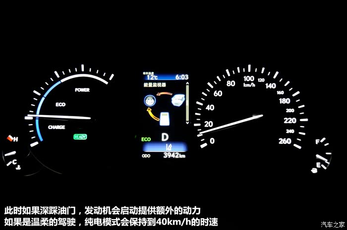 当然新雷克萨斯ES 300h不仅只会绅士般温柔,如果偶尔想激情一下,不要犹豫,直接按下POWER键,此时油门踏板变得很灵敏,发动机积极启动,电动机辅助做功,推背感足足的,提速相当快,翻了下资料,新雷克萨斯ES 300h的这套2.5L混动系统,大约相当于3.0L排量自吸发动机的动力水平,而且电动机的扭矩爆发更是先天优势,在暴力驾驶的急加速时,将转速拉至3000转以上,我甚至会有这是涡轮车的错觉。