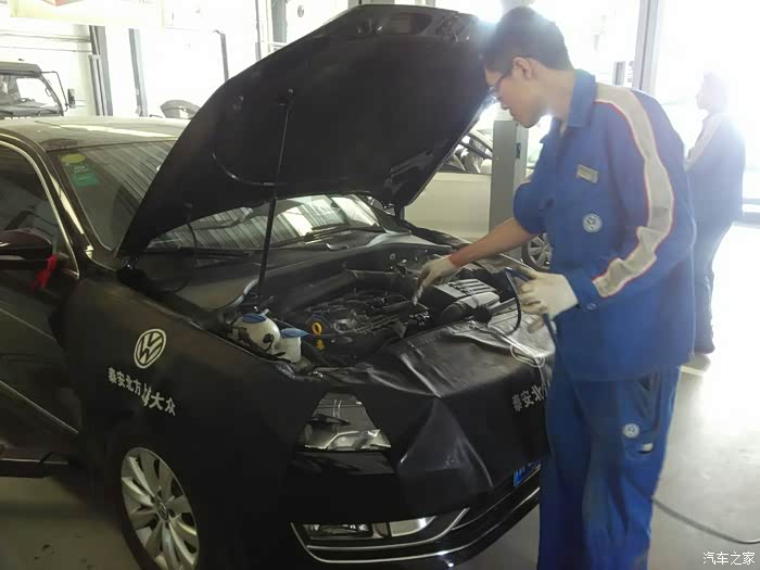 擦拭发动机仓很细心!后来又给测了胎压!