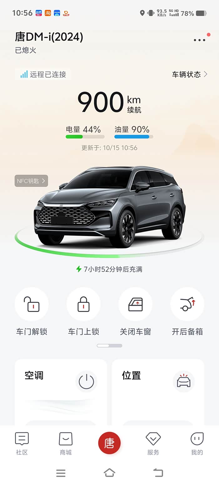 配置上唐DM-i也比油车更齐全,就拿夏天开车来说吧,唐DM-i是支持远程控制的,坐在家里随时都能打开车内的空调,夏天用车舒服不少。