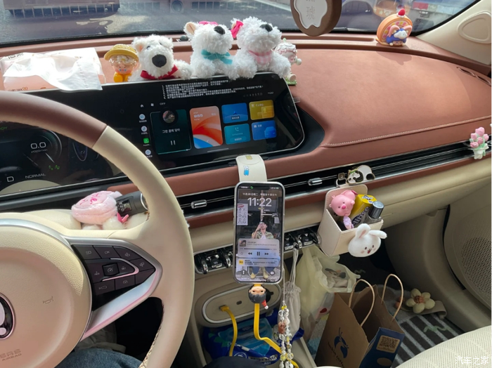 (看看我这半年来装饰的成果,看起来还蛮温馨的嘛~)日常在市区内通勤用好猫代步真的绰绰有余了,首先就是方向盘轻细,我力气不大也能很好的操控,怀挡挂挡就在方向盘旁,挂挡安全又不费力。