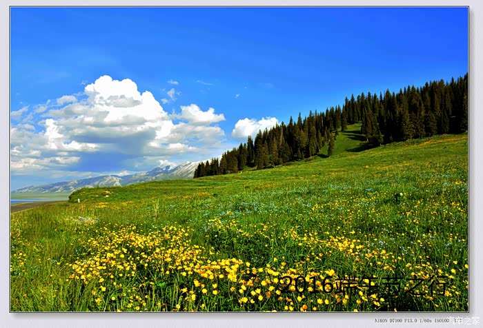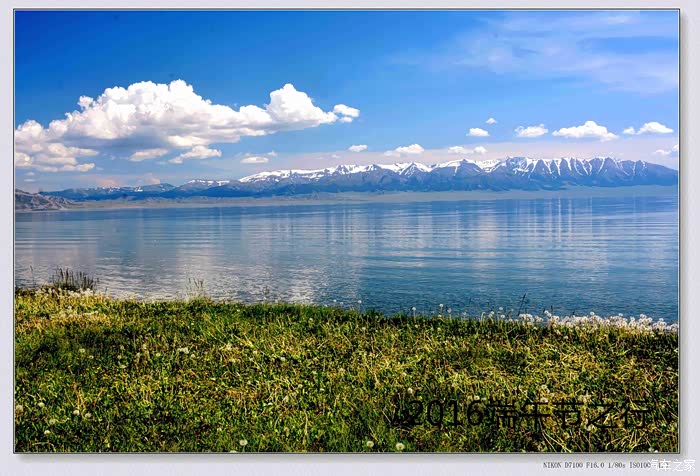去年“六一”去的赛里木湖,当时景区内到处山花烂漫,一片片的黄花布满湖边,衬托着远山和湖水格外美丽。只可惜天宫不作美,阴云密布,湖水显得灰蒙蒙的,未能欣赏到蔚蓝的湖水和早上的日出(当天早上,景区下起小雪)。
