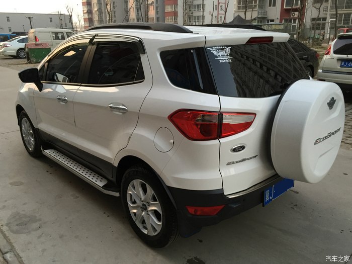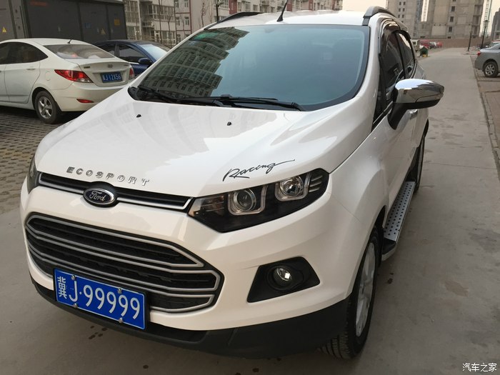 本人89年的,第一辆车是老爸淘汰的老捷达,07年的车况依然很好,高速170稳稳的,市区超车也没问题,就是油耗不低一直在10个左右,今年结婚后突然觉得该换坐骑了,本人和媳妇都在医院工作,上班时间不长没什么积蓄,也没打算跟家里伸手,所以价位就定在10W左右的,买什么车媳妇不管,跟我说只要能接我上下班就行,而且不要日本车,这点跟我一样,我不只不要日本车而且韩国车也不考虑,考虑的就行大众,福特,标志,大众开过,老捷达给我的印象非常好,但是都听说现在大众不厚道了所以有点犹豫,福特是我非常喜欢的品牌,福克斯从刚出来我就关注了心想以后一定要买一辆,去SSSS的时候也看的福克斯,但是媳妇一眼看上了翼搏一问价格比福克斯还便宜,就动员我买个SUV吧,我也开了这么长时间轿车了也想换换口味也可以让媳妇高兴,那就这么定了,白色翼搏,当时定的是自尊但是没白色让等就交了1000定金,等了半个月也没信,催了几次告诉我有辆白自风刚到的现在就能提,媳妇说也行就去提车了,找的熟人给优惠的,还送的全车雷朋、脚垫后备箱垫把套、倒车雷达、挡泥板、驾宝OBD盒子,上全险优惠了15%,当时全款提车开心走人,提车后就TB了有用没用的全都买,败家开始了、、、下面上图吧,不会排版凑合看吧。