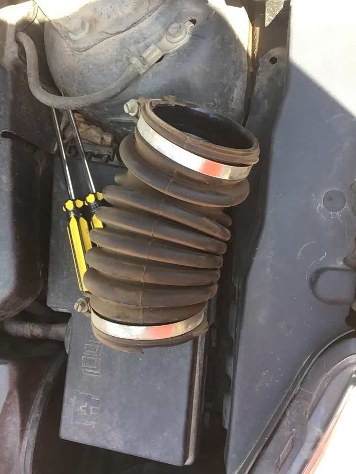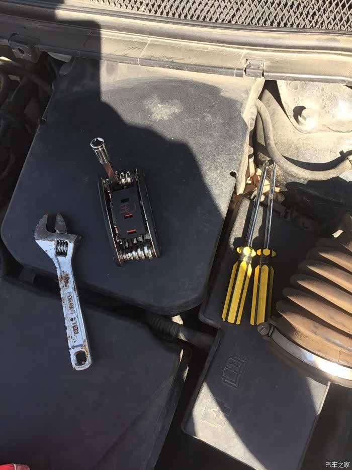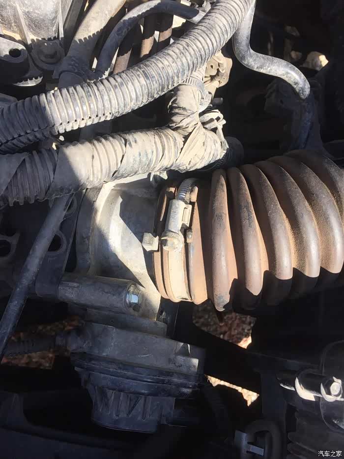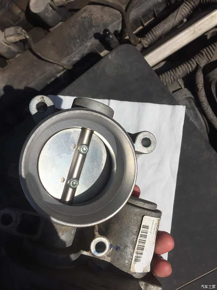 先松开空滤和节气门之间的风管,用一字螺丝刀。再松开节气门,四个螺丝,八毫米的外六角。折开看正面挺干净,反面还是很脏的。