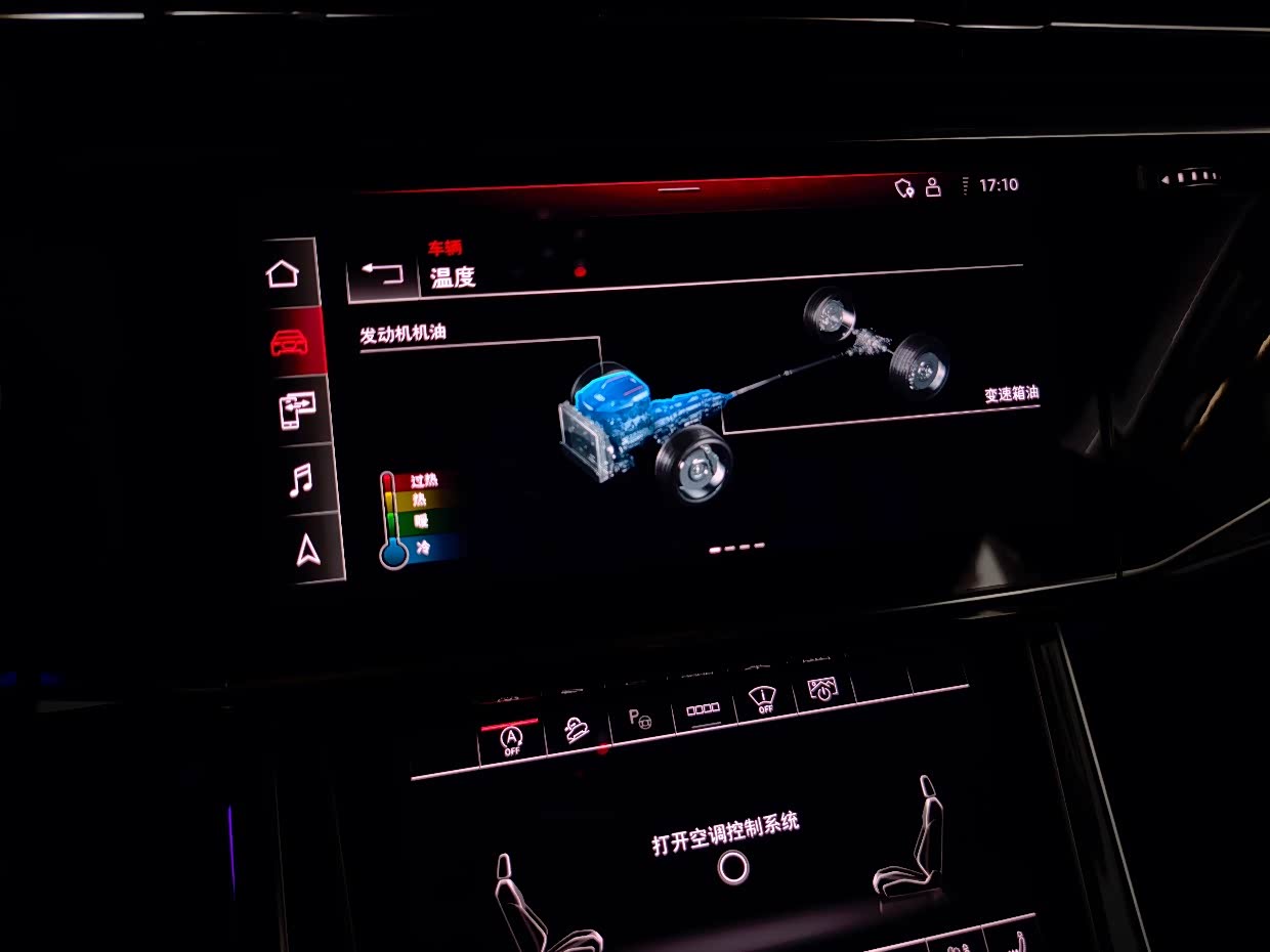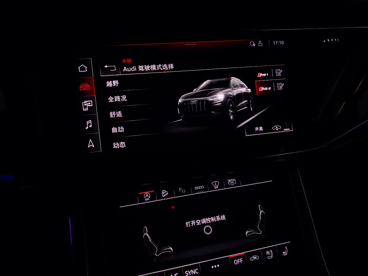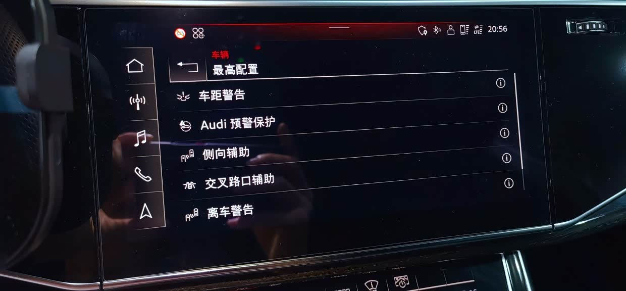 尊享动感型是Q8家族中的顶配车型,标配HUD,BO音响,香氛系统,带自动走停的全速自适应巡航,车道保持,五段可调空气悬挂,后轮转向,前排座椅通风加热按摩,后排座椅加热,后排电动遮阳帘,车顶行李架等等高端配置。