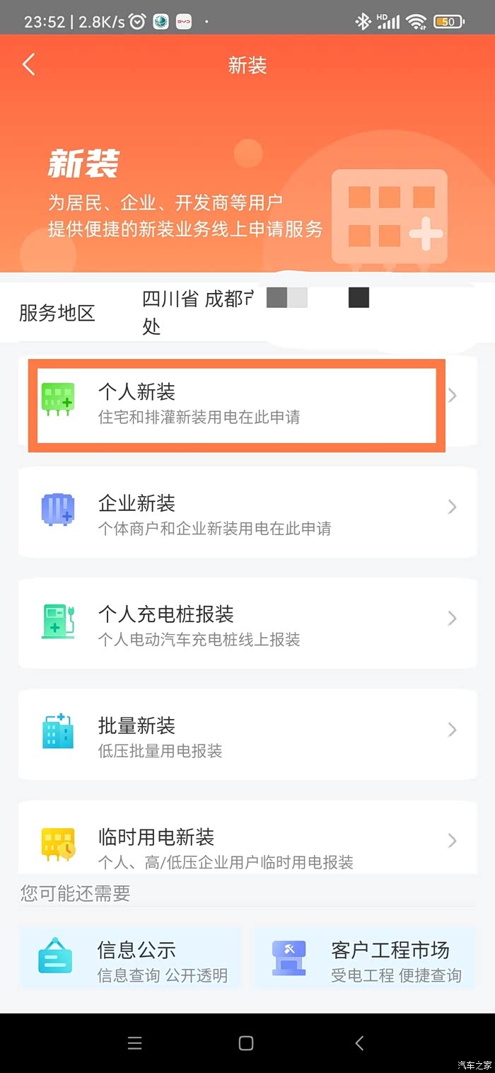 以成都为例,供电所的工作人员说不是申请个人充电桩,而是在首页点击新装