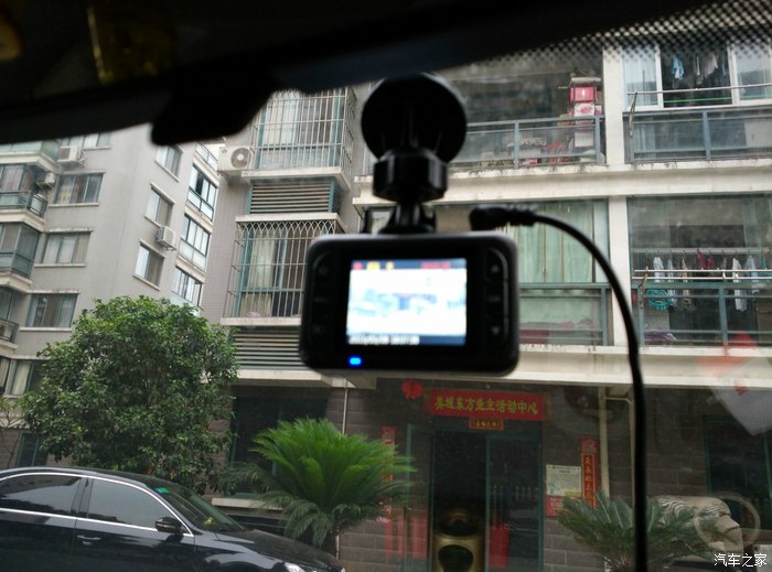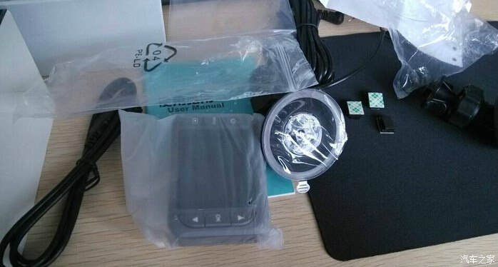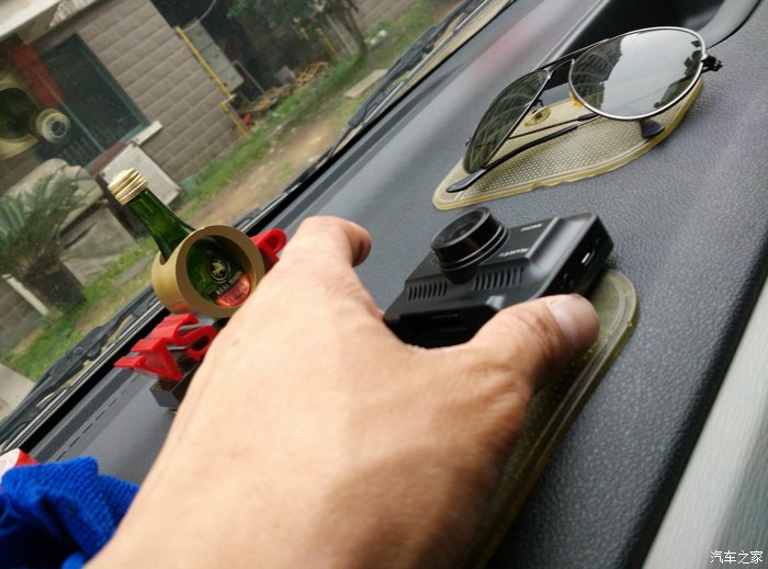 这是一整套的记录仪配件,主机还是很小的说,但是画面很给力的,支架有两种,一个吸盘和一个3M胶粘的支架,我用了3M胶的那个,如下图: