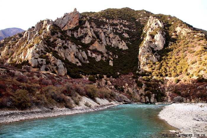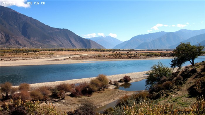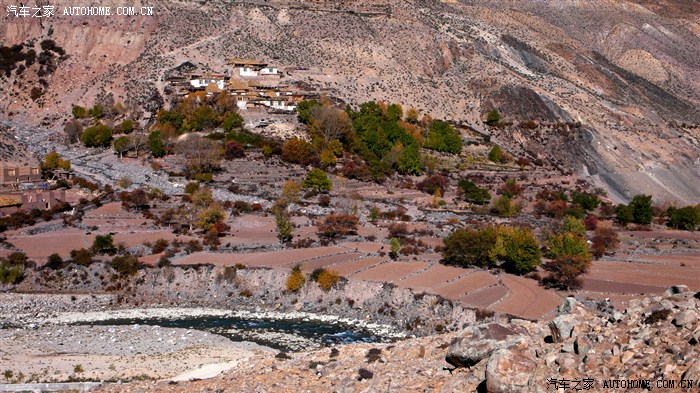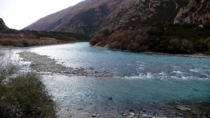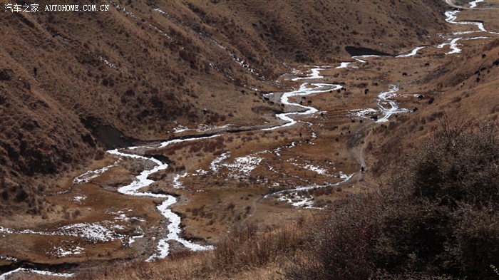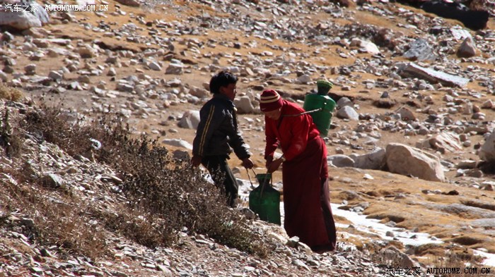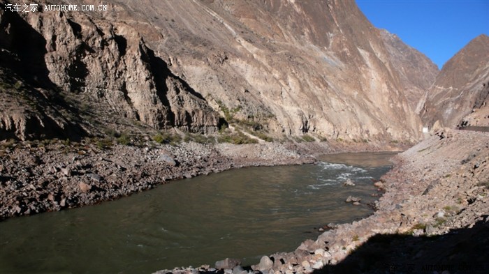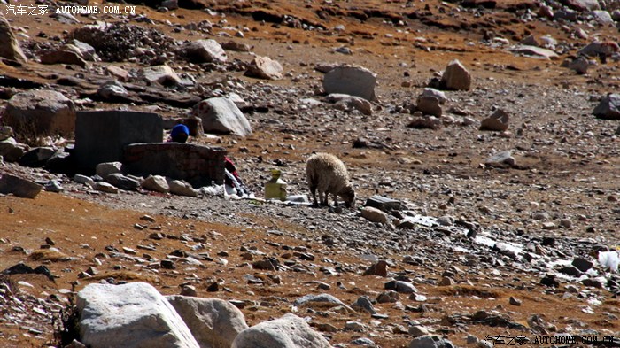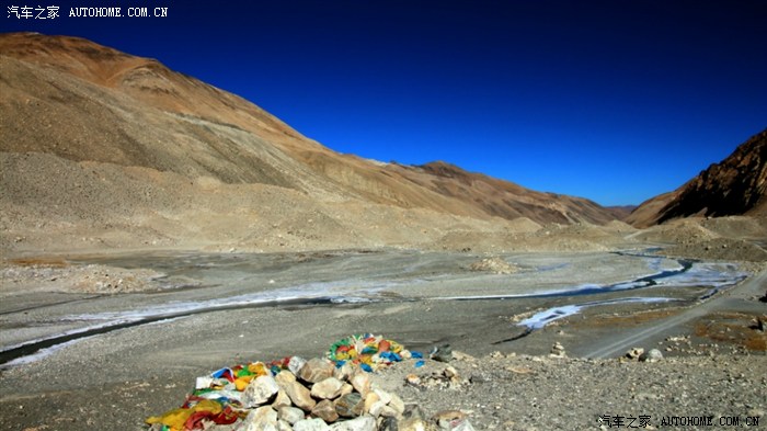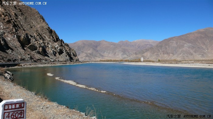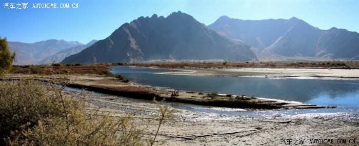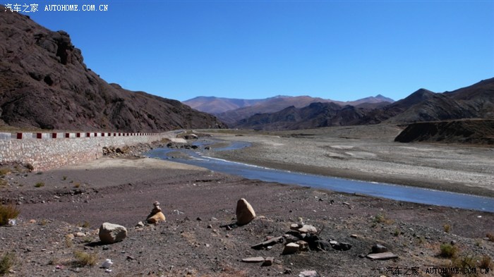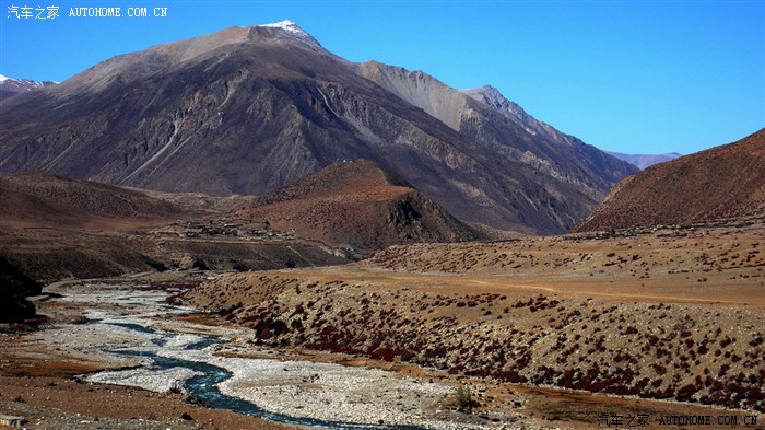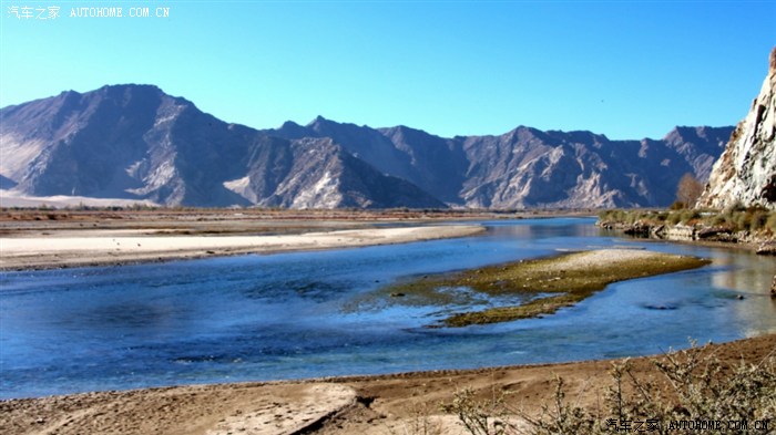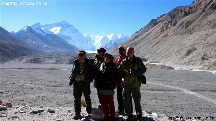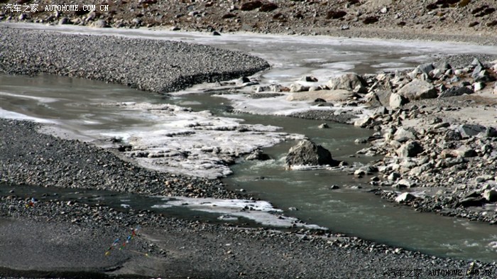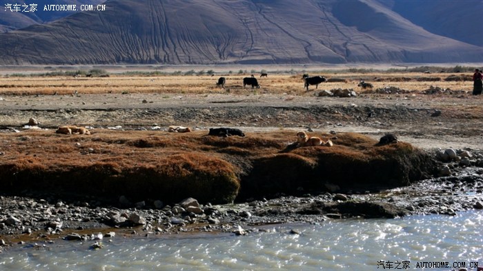 这里是24日去珠峰时我们午餐的地方,小河流水景色不错。从珠峰返归日喀则走到这里,遇交通事故堵车,因不知何时能解决问题通车,看有当地车下河道过河绕行,我们也冒险跟行,结果老付的车陷在河道沙滩里,而另两车已冲过无法返回救援,折腾半天最后还是求助别的越野车才拉出险境,这时交通事故也已解决通了车,白费劲了。所以经验教训是在不明路况的情况下,千万不要冒然离开硬路面,尤其是沙地、河滩、湖滩地更要慎行,否则一旦陷车带来的就是大麻烦。