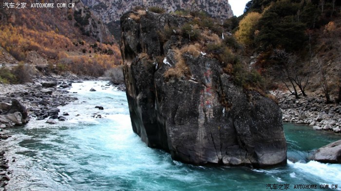 中流砥柱—耸立在尼洋河中,任凭湍急河水冲击而屹立不倒的巨石。
