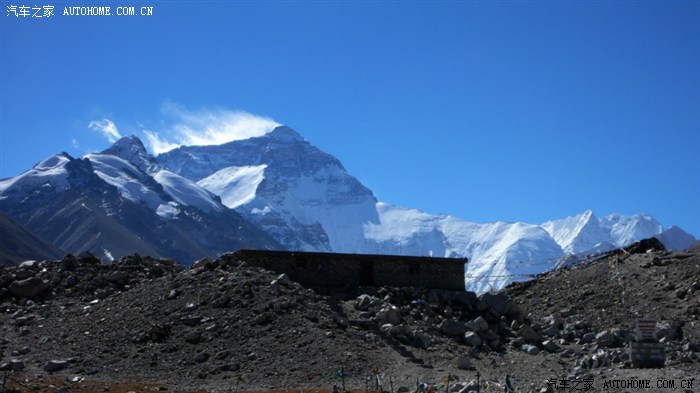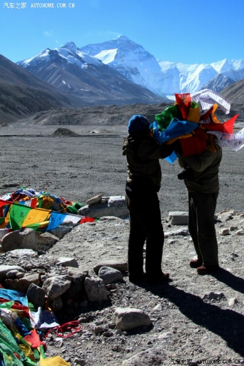 因进入淡季,所有的服务项目两天前刚刚全部撤离,所有我们也不必在绒布寺换环保车而由自己驾车直奔珠峰观景台(距离8公里),唯一可惜的是久负盛名的珠峰邮局也下撤了,不能在海拔最高的邮局发明信片回去了。 观景台就是一个十几米高的土台(爬上去还需要费把子力气),登台前,有边防站武警登记身份证并交代注意事项,这里是游客能够到达的最后地点。登上观景台后,眼见海拔8844米的世界最高峰清晰地展现在自己的面前,此时此刻知道多年的梦想终于成真。