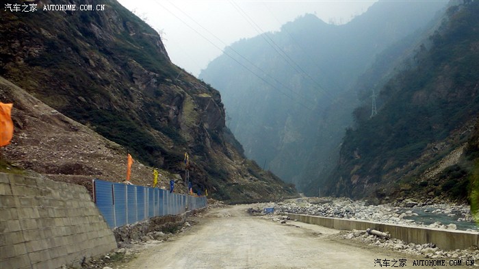 从巴朗山下山后即进入卧龙大熊猫自然保护区,据说汶川地震后大熊猫都搬到其它地方去了,路边可以看到大熊猫博物馆的建筑物,我们没有进去。卧龙再往前行路面开始有所损坏,正如他人所言,至映秀最后22公里是颠簸的砂石路面,但只要谨慎驾驶、慢慢行车,小轿车通过应该没有问题(再坏也比珠峰路强),我们的宝算是押对了,否则走其它路段的话一天到不了成都。一般而言除去自然灾害,道路破损多与周边的水利建设有关。