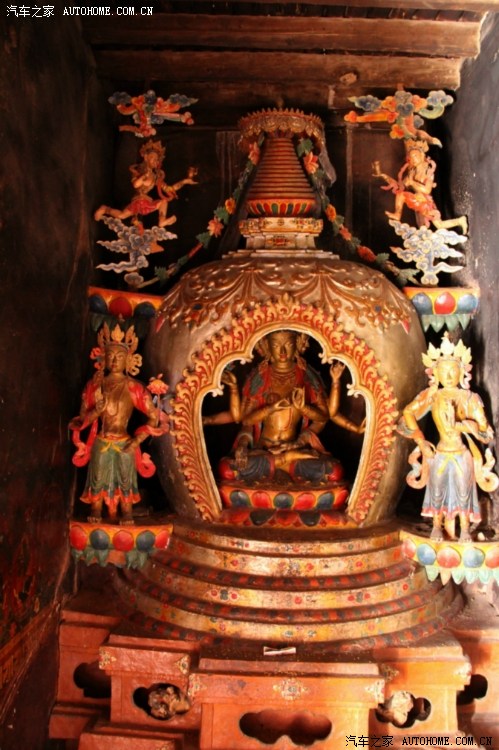 白居塔内极具特色众多的壁画、佛龛、佛像闻名西藏,难得的是塔内只需交10元钱就可以随意照相,这在藏区是绝无仅有的,着实过把瘾。