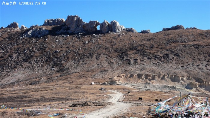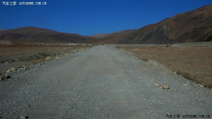 走出珠峰路三辆车的减震都有所损伤,看来城市SUV只能适应城市道路。图右两个小门楼就是珠峰路的起点标志物。