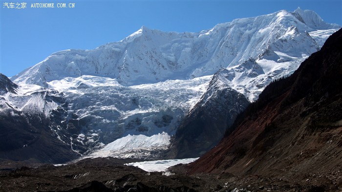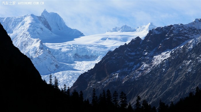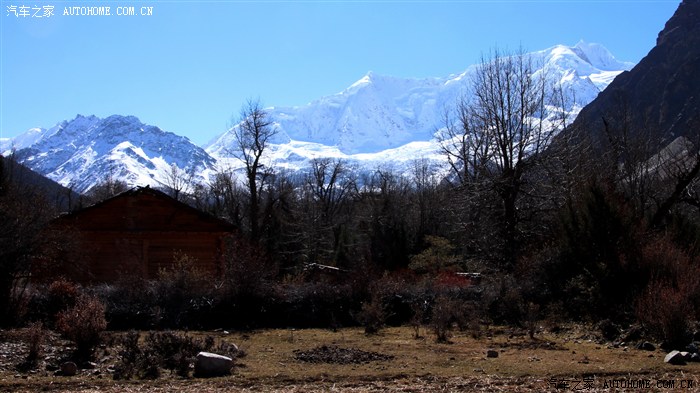 远处雪峰应该是海拔7191米的米拉轨岗主峰宁金抗沙峰
