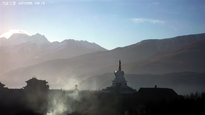 远眺吐蕃时期第一批兴建的佛教寺庙之一昌珠寺(全国文物保护单位),因时间关系未能参观,寺庙中最珍贵的文物是一幅珍珠唐卡。