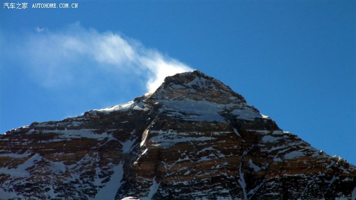 上天眷顾,难得一见的珠峰旗云渐渐浮现在眼前,查百度介绍旗云是由对流性积云形成,可根据其飘动的位置和高度,来推断峰顶风力的大小。如果旗云飘动的位置越向上掀,说明高空风越小,越向下倾,风力越大;若和峰顶平齐,风力约有九级,因此,珠峰旗云又有“世界上最高的风向标”之称。